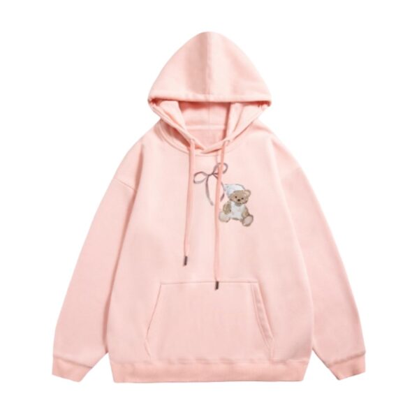 Pink Hoodie with Cute Teddy Bear Print